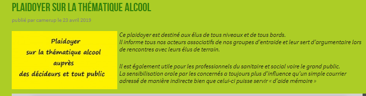 Il informe tous nos acteurs associatifs de nos groupes d’entraide et leur sert d’argumentaire lors de rencontres avec leurs élus de terrain.